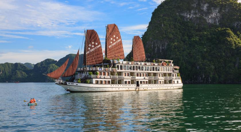 12:00 Welcome guests at Victory Café – Hon Gai International Tourism Port and check in for boarding 12:30 Check in on Victory Star, enjoy fruit juice and journey introduction 13:00 – 14:30 Begin the journeyLunch with local cuisines 15:00 Transfer to a boat to visit Vung Vieng fishing village - pearl exploration place. You can have chance to see a real daily life of original fishing village. 16:30 Traditional boat racing 17:00 Stop at Dong Tien Lake, Free to swim18.00: Relax and see sunset on the bay 18:30 Join cooking class 19:30 – 21:00 Dinner at the restaurant 21:00 Watch video of Ha Long Introduction. Relax on deck or join fishing fish or squid. Accommodation: Victory Star Cruise