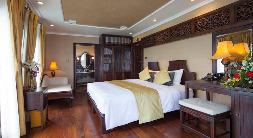 Launched on November 2009, our newest five star junk - the Halong Violet - fitted out in the 1930’s Indochine style. It featured a boutique dinning room, library & lounge, Spa & Gym and 6 individual theme cabins with marble bathroom, jacuzzi & balcony. The junk also cruise its own way away from the crowd to untouched areas of the bay.