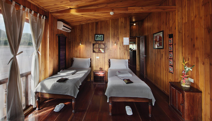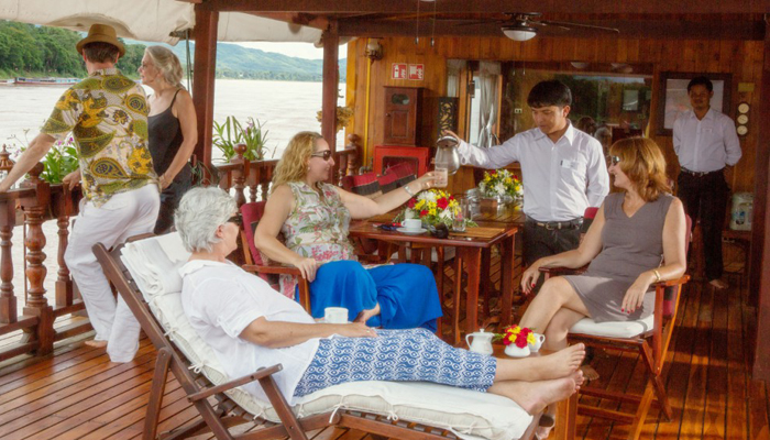 As you cruise along the green hills, you will start heading upstream towards Pak Tha. At Pak Tha, a small village, you will take off on a long-tail boat excursion on the Namtha River to visit a Khmu village. You will also visit a small village school sponsored by guests of the Mekong Company. The purely natural landscape is only broken by the seldom sights of small villages and local herds of cattle. Enjoy the comfort and service onboard: exclusive, yet casual, you’ll share the boat with no more than 26/30 fellow guests. You will then spend a last relaxing dinner and evening aboard.