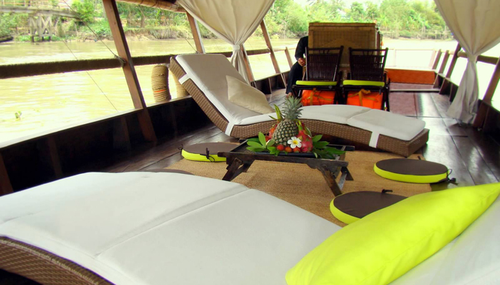 Sampans "Mekong Princess" (I & II): Capacity 45 pax / Dimensions: 15m long x 3m wide / ideal for groups, equipped with toilets on board - Daily Private chartered Cruises (special itineraries possible on request).