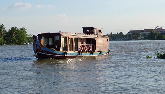 Due to its shallow draft, the Gecko Eyes is able to glide through small tributaries and canals of the Mekong delta. The sailing area is from My Tho and Cai Be, near Saigon, through the lovely colonial town of Sa Dec, along Can Tho with its famous floating markets to Long Xuyen an Chau Doc near the Cambodian border. Basically the Gecko Eyes has the whole Mekong delta region at its disposal, as the ships are self-sufficient for several days.