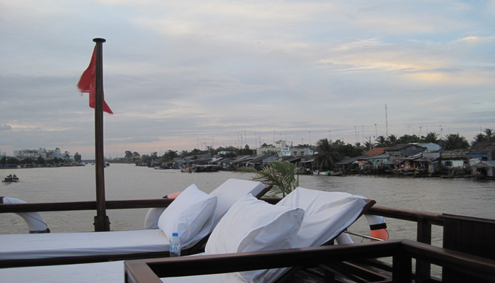 Rising up early for another nice day we contemplate sunrise while having breakfast on board. A small boat take us to visit the Sa Dec local market, following the tracks of French novelist Marguerite Duras. Visit bricks and tiles kilns and the manufacture of earthenware pots on a bank of river. Authentic Mekong Sampan leisure cruise down to Binh Hoa Phuoc island luch is served on route. Afternoon we take a boat ride to visit Binh Hoa Phuoc with opportunity to marvel at beautiful islands with enderless waterway and arroyos. We enjoy the lush vegetation while cycling across the island and meet with people and get insight into local life. Return on boat with a rest on the deck enjoying the sunset on sundeck. The crew serves dinner while the Authentic Mekong Sampan is cruising. Authentic Mekong Sampan sets anchor in for the night. Overnight on boat.