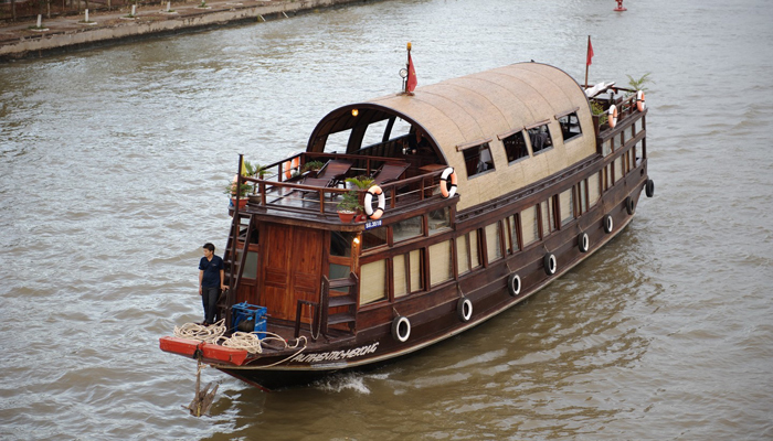 Embark on our Authentic Mekong Sampan at the pier in Long Xuyen and enjoy a welcome drink at 11: 30. Explore the Long Xuyen market one of the most bustling floating markets in Mekong Delta with hundreds of small boats barging and jostling for space as owners attempt to sell their goods. Visit Cu Lao Ong Ho a small Island in Long Xuyen and enjoy the scenery and walk /cycle to visit villages the island, passing by farmers, children, villagers tendering their daily load. See local farmers trading their produce on the water as they have done for centuries. You will have a unique opportunity to discover a side of Delta life that few travellers experience. Back to boat and enjoy welcome back drink while lunch is served. Authentic Mekong Sampan set sails through the canals of Lap Vo with a magnificent landscape that come along the river banks: rural walks, farming, nursering farm, fishing, boating, smiling school children all in full swing. Embark to explore blossoming bonsai and flowers garden and Cao Dai temple. Enjoy traditional herbal foot massage on boat. Diner and while Authentic Mekong Sampan cruises towards Sa Dec. Authentic Mekong Sampan drops anchor for the night. Diner et overnight on boat.